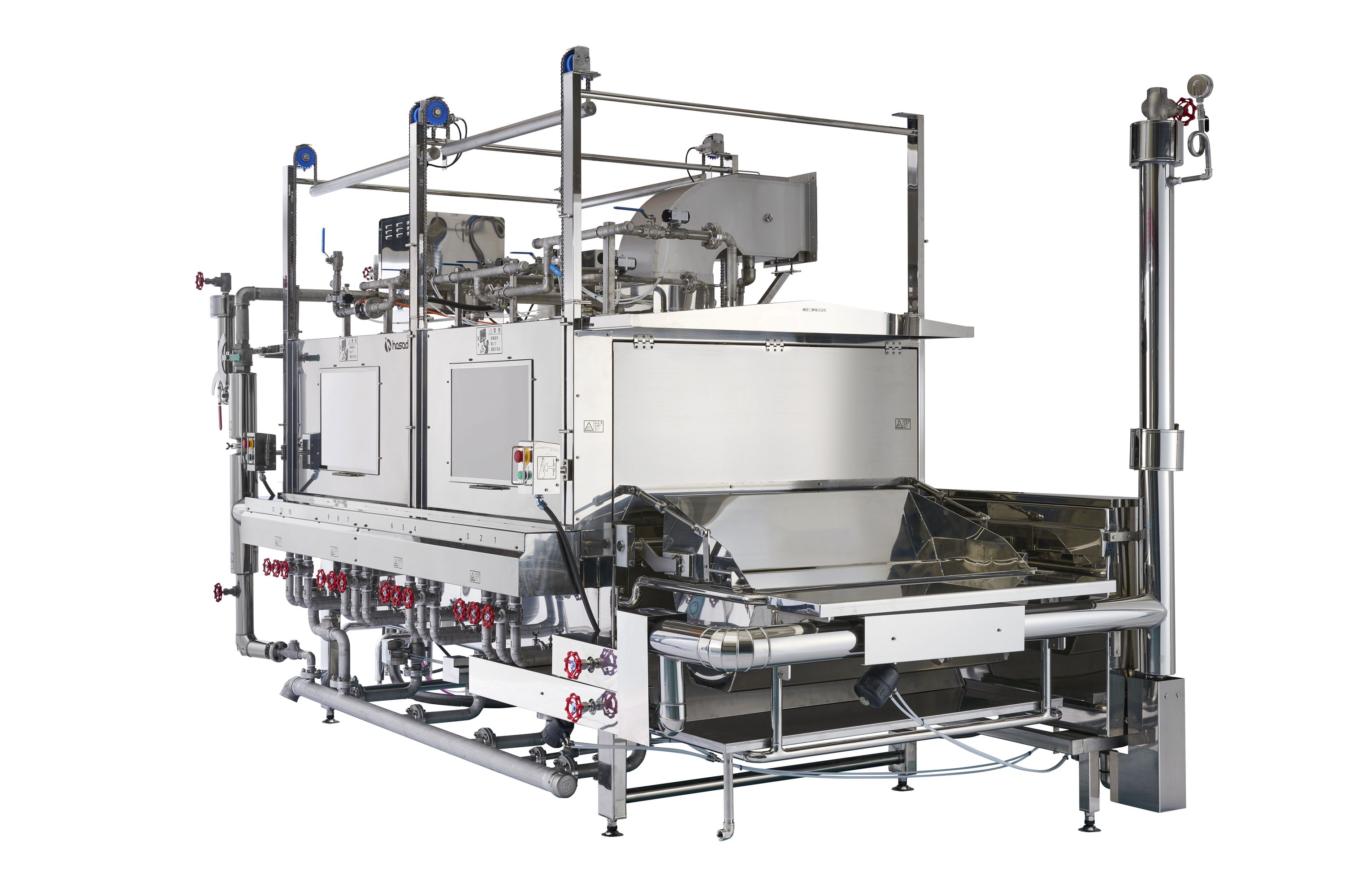 洗浄(解凍)・ボイル・冷却工程を連続作業。さらに重労働から開放!!