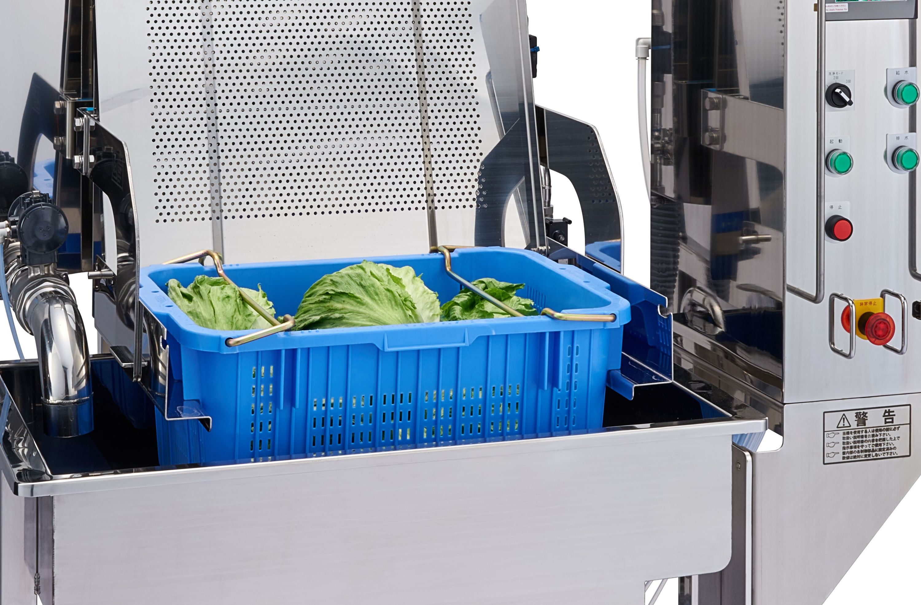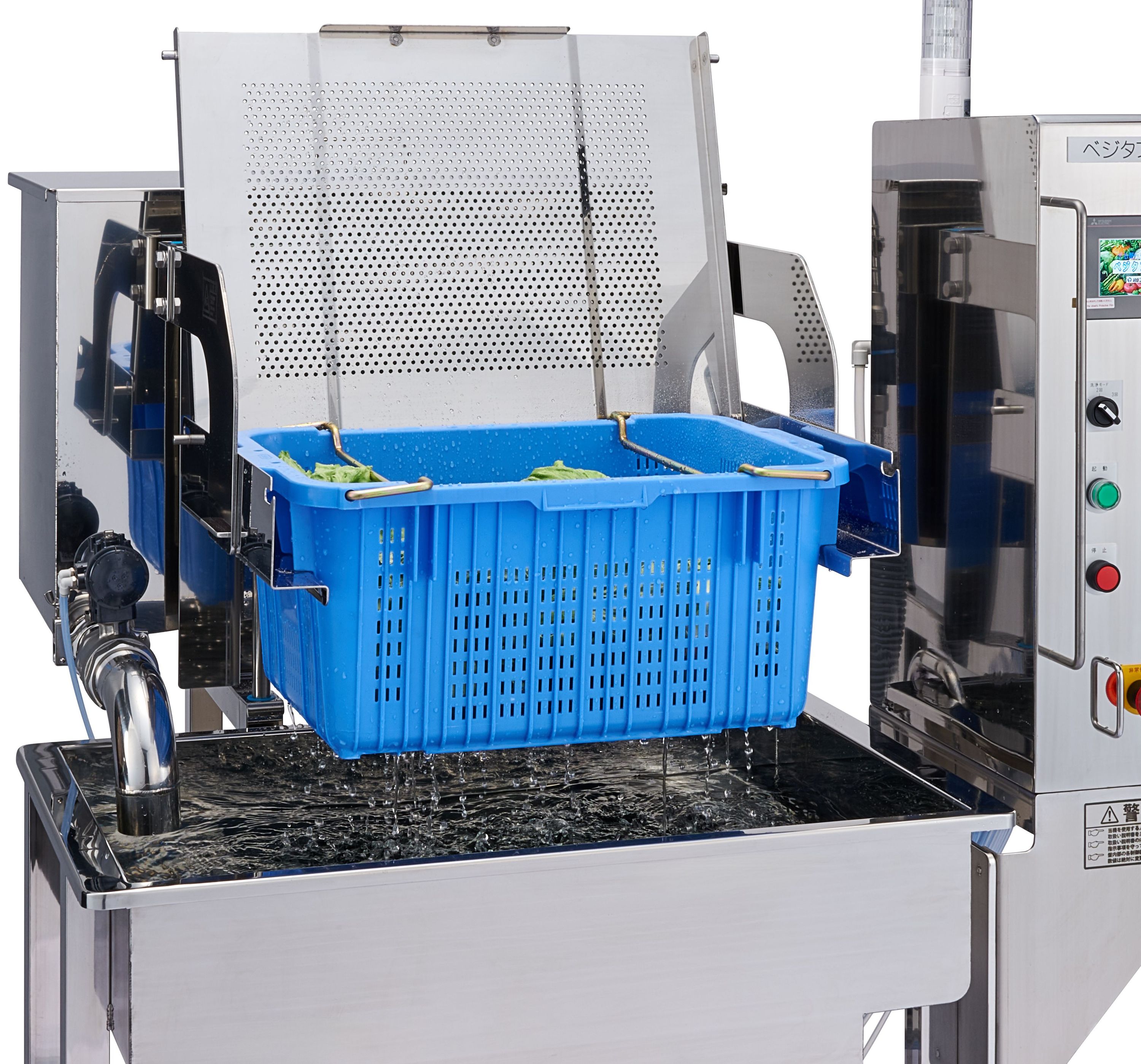ザル篭揺動式洗浄ザル篭の上下運動(揺動式)による優しい洗浄でダメージを抑え、菌数制御につなげます。